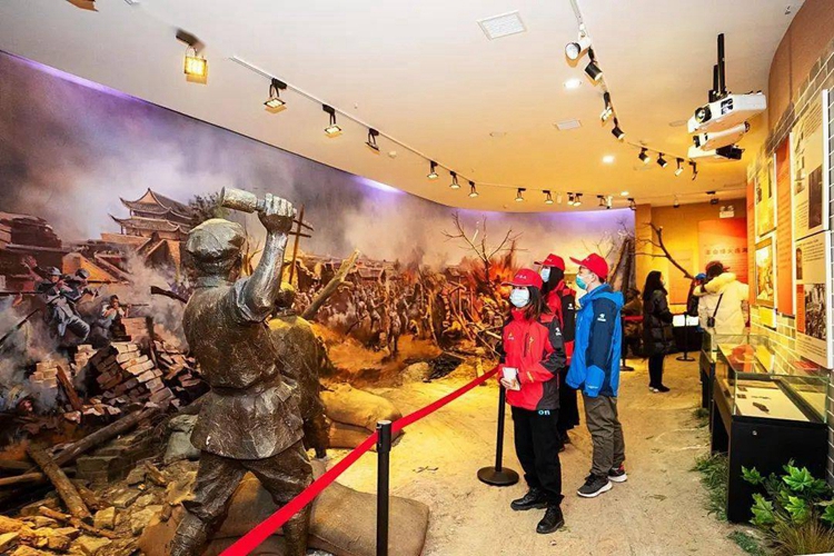 ▲在監(jiān)利市革命歷史博物館,“00后”大學(xué)生參觀當(dāng)年工農(nóng)革命軍攻打監(jiān)利城時的場景。