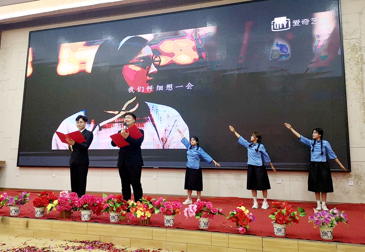 此次比賽共有初賽選拔出的17支隊(duì)伍參加了決賽。朗誦比賽有單人誦讀、也有小組誦讀,節(jié)目形式多樣、內(nèi)容豐富、主題鮮明、精彩紛呈?!吨貞涢L(zhǎng)征路》、《老兵不死》、《揚(yáng)帆紅船》、《沒(méi)有共產(chǎn)黨就沒(méi)有新中國(guó)》、《永遠(yuǎn)跟黨走》、《中國(guó)啊!我的中國(guó)》等經(jīng)典著作經(jīng)過(guò)學(xué)生們的精心演繹,呈獻(xiàn)給觀眾一場(chǎng)感人肺腑的視聽盛宴。同學(xué)們以飽滿的熱情、聲情并茂的朗誦表達(dá)了對(duì)祖國(guó)母親、對(duì)中國(guó)共產(chǎn)黨的感激、熱愛之情和對(duì)革命先烈的緬懷和敬仰。參賽隊(duì)伍的出色表現(xiàn)贏得了在場(chǎng)評(píng)委及觀眾的陣陣掌聲,給現(xiàn)場(chǎng)觀眾帶來(lái)了精神上的洗禮,激發(fā)了廣大師生愛黨、愛國(guó)、愛社會(huì)主義的深厚情懷。