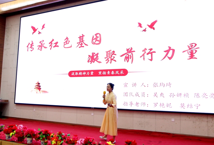 比賽現(xiàn)場(chǎng)還穿插了一個(gè)特殊環(huán)節(jié)。6月24日,我校參加廣西高校思政課共建第六組“學(xué)‘四史’守初心,揚(yáng)青春擔(dān)使命”大學(xué)生理論宣講比賽并榮獲特等獎(jiǎng)1項(xiàng)、一等獎(jiǎng)2項(xiàng)。榮獲特等獎(jiǎng)的張嶼琦團(tuán)隊(duì)現(xiàn)場(chǎng)在今天給大家講一堂精彩的《傳承紅色基因,凝聚前行力量》黨史學(xué)習(xí)課。