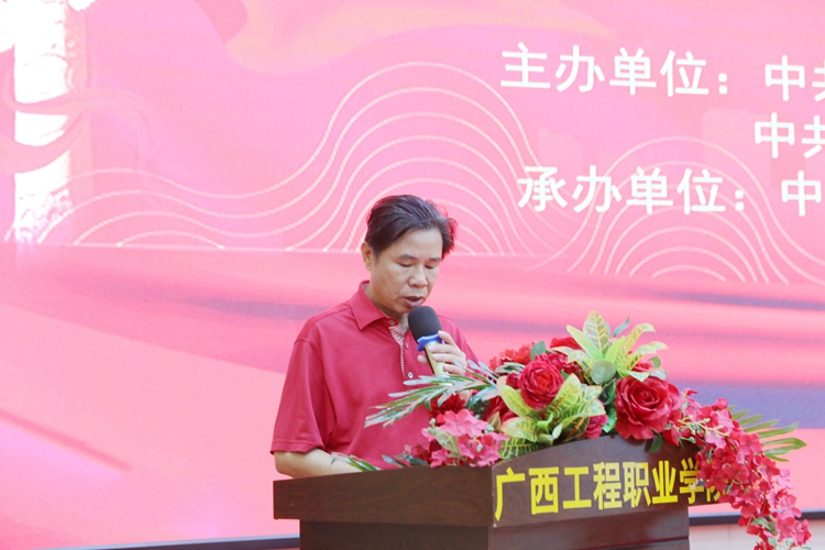 學(xué)校紀(jì)委書記李益宣布廣西工程職業(yè)學(xué)院“學(xué)黨史、銘初心、擔(dān)使命,慶祝建黨100周年紅色經(jīng)典詩(shī)詞朗誦比賽”正式開始!