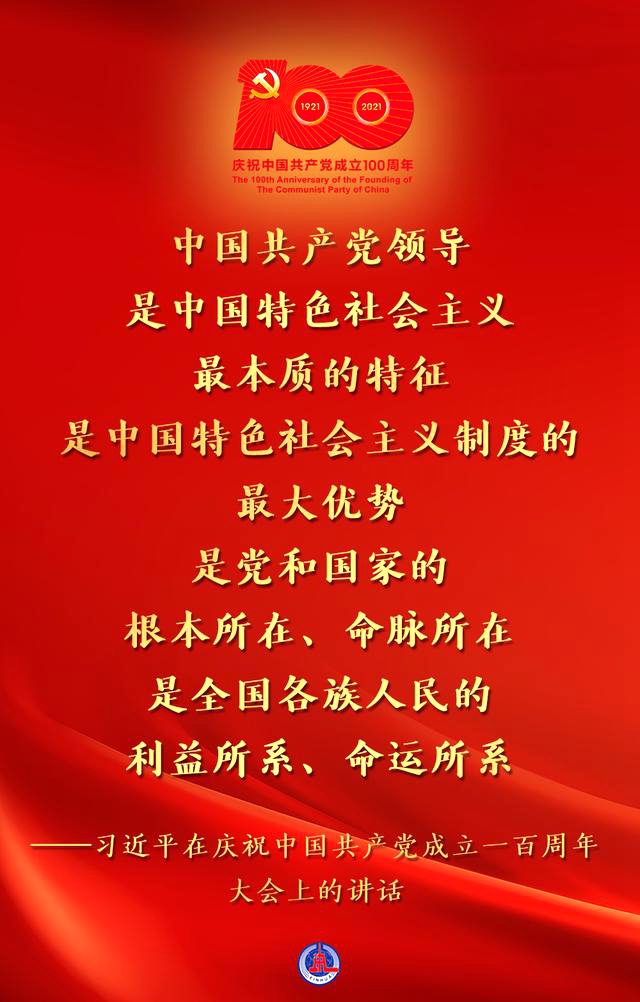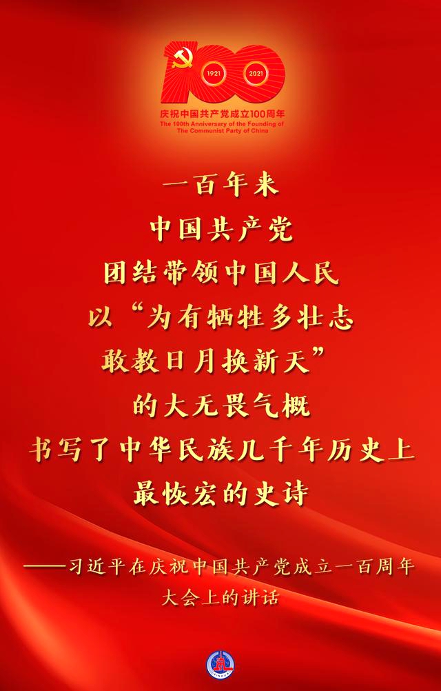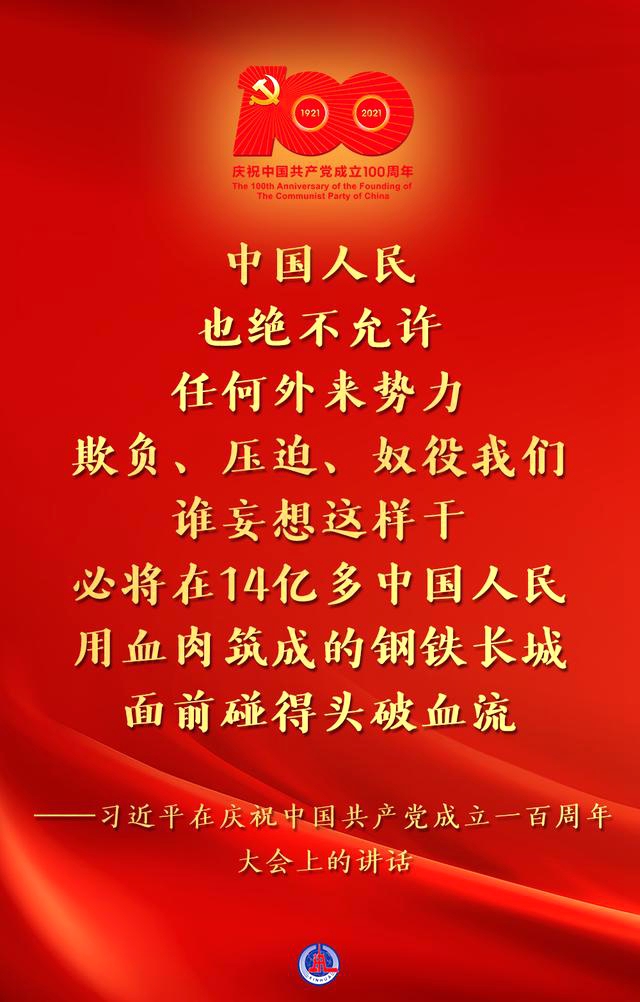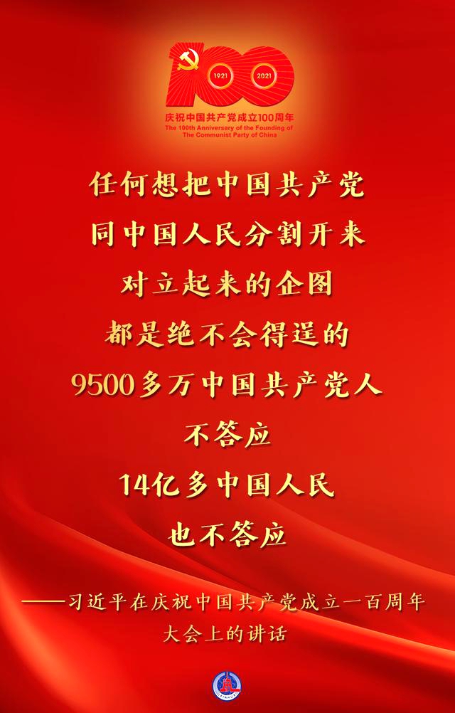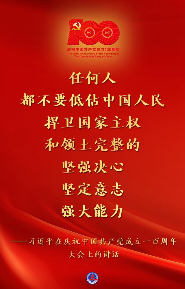 7月1日,慶祝中國(guó)共產(chǎn)黨成立一百周年大會(huì)在北京隆重舉行,習(xí)近平總書記出席并發(fā)表重要講話。 一起讀金句:
