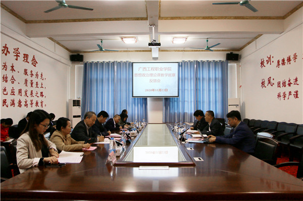 11月23日上午,廣西高校思想政治理論課教學(xué)巡察組專家在組長百色學(xué)院黨委副書記徐魁峰教授帶領(lǐng)下,桂林電子科技大學(xué)馬克思主義學(xué)院鄧國峰教授、廣西大學(xué)馬克思主義學(xué)院楊通進(jìn)教授、百色學(xué)院馬克思主義學(xué)院院長韋順國教授一行4人,蒞臨廣西工程職業(yè)學(xué)院開展思想政治理論課教學(xué)工作巡察。