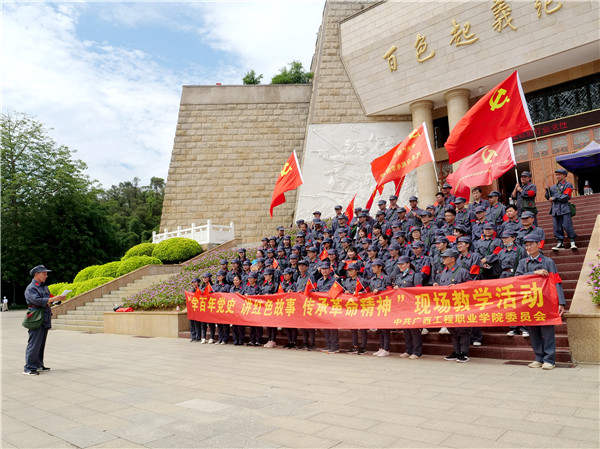 為深入開展黨史學習教育,進一步增強廣大黨員干部學黨史、悟思想、辦實事、開新局的責任感和使命感,6月5日,廣西工程職業(yè)學院黨委組織100多名師生黨員赴百色市開展“緬懷革命先烈·傳承紅色精神·踐行初心使命”主題黨日活動。學校黨委書記呂偉斌,副書記、副校長胡細木,宣傳部部長、副校長彭高彬,副校長林萌等校級領導參加了主題黨日活動。
