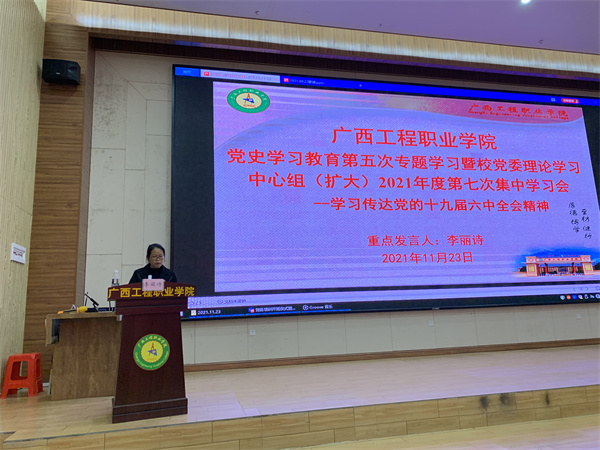 會(huì)上,校黨委書記呂偉斌傳達(dá)了黨的十九屆六中全會(huì)精神。他指出全體黨員要進(jìn)一步提高政治站位,深刻領(lǐng)會(huì)學(xué)習(xí)貫徹習(xí)近平總書記視察廣西時(shí)的重要講話精神的重要意義,把學(xué)習(xí)貫徹總書記重要講話精神轉(zhuǎn)化到學(xué)校工作建設(shè)中。學(xué)習(xí)好、宣傳好、貫徹好全會(huì)精神,是當(dāng)前和今后一個(gè)時(shí)期的重大政治任務(wù)。