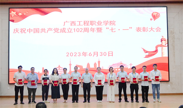 大會在莊嚴(yán)的國歌聲中拉開帷幕。黨委副書記黃秋霞帶領(lǐng)大家重溫入黨誓詞。學(xué)校紀(jì)委書記、副校長彭高彬宣讀了《中共廣西工程職業(yè)學(xué)院委員會關(guān)于表彰優(yōu)秀共產(chǎn)黨員、優(yōu)秀黨務(wù)工作者、先進(jìn)基層黨組織和“學(xué)習(xí)強(qiáng)國”學(xué)習(xí)標(biāo)兵的決定》。與會學(xué)校黨政領(lǐng)導(dǎo)班子分別為受表彰的優(yōu)秀共產(chǎn)黨員、優(yōu)秀黨務(wù)工作者、先進(jìn)基層黨組織和“學(xué)習(xí)強(qiáng)國”學(xué)習(xí)標(biāo)兵頒獎。