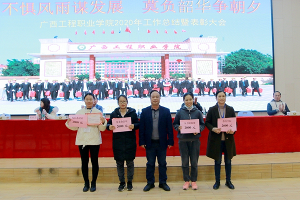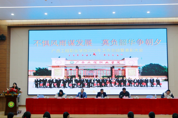 為表彰先進(jìn)、弘揚(yáng)正氣、振奮精神,激發(fā)廣大教職工干事創(chuàng)業(yè)的熱情,根據(jù)年度評(píng)優(yōu)方案及量化指標(biāo),經(jīng)黨政聯(lián)席會(huì)研究,決定對(duì)工作中取得優(yōu)異成績(jī)的24個(gè)先進(jìn)個(gè)人和集體予以表彰。2021年1月28日,廣西工程職業(yè)學(xué)院2020年度工作總結(jié)暨表彰大會(huì)在圖文信息大樓報(bào)告廳舉行。
