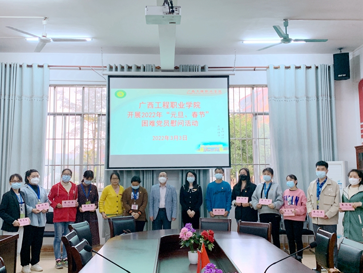 3月3日下午,學(xué)校黨委在黨員活動(dòng)室開(kāi)展2022年春節(jié)慰問(wèn)困難黨員活動(dòng),校黨委副書(shū)記黃秋霞,紀(jì)委書(shū)記、副校長(zhǎng)彭高彬等同志代表學(xué)校黨委對(duì)10名困難黨員進(jìn)行慰問(wèn)。