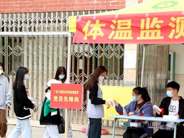 學(xué)校在食堂、學(xué)生宿舍區(qū)設(shè)置黨員先鋒崗,開(kāi)展測(cè)溫等疫情防控工作