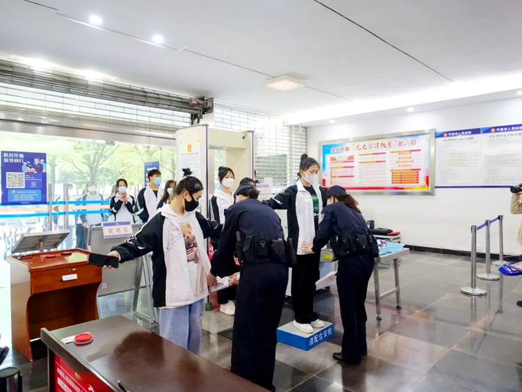 同學(xué)們嚴格按照規(guī)定通過安檢