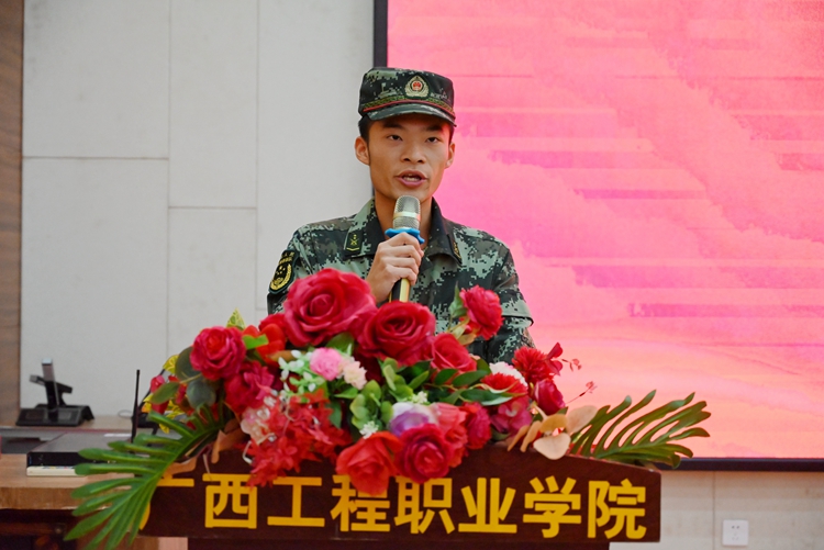 退役復學老生代表汽車與機電學院學生江祖龍發(fā)言,他希望退役復學的新戰(zhàn)友們,夠牢記退伍誓言,不忘初心,始終堅守軍人本色,以部隊的優(yōu)良作風帶動和感染同學們,努力學習科學文化知識,主動參加學校組織的活動。以實際行動引導更多的同學自我教育、自我管理、自我服務,無愧于新時代退役軍人的光榮稱號,在學校這個新戰(zhàn)場做一名優(yōu)秀大學生。