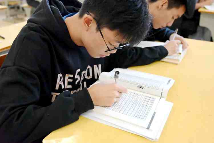 書法課堂上,學生們在老師的指導下,認真地書寫。同學們凝神靜坐,姿勢端正,在一筆一劃的勾勒中感受漢字的間架結(jié)構(gòu)之美,領(lǐng)悟漢字的傳神之妙,受到廉潔文化的熏陶。