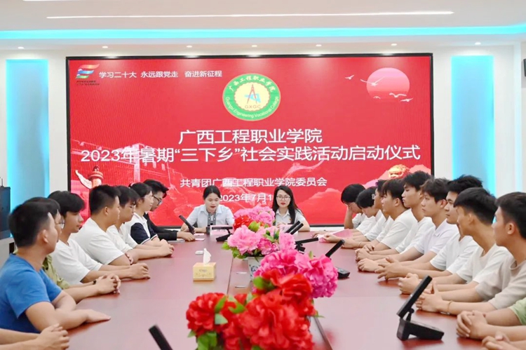 為深入學(xué)習(xí)宣傳貫徹習(xí)近平新時(shí)代中國(guó)特色社會(huì)主義思想和黨的二十大精神,落實(shí)習(xí)近平總書(shū)記關(guān)于青年工作的重要思想,引導(dǎo)和幫助廣大青年學(xué)生上好與現(xiàn)實(shí)相結(jié)合的“大思政課”,在社會(huì)課堂中受教育、長(zhǎng)才干、作貢獻(xiàn),引領(lǐng)學(xué)生立志做有理想、敢擔(dān)當(dāng)、能吃苦、肯奮斗的新時(shí)代好青年,我校于2023年7月15日晚在大數(shù)據(jù)中心召開(kāi)廣西工程職業(yè)學(xué)院2023年暑期“三下鄉(xiāng)”社會(huì)實(shí)踐活動(dòng)啟動(dòng)儀式。