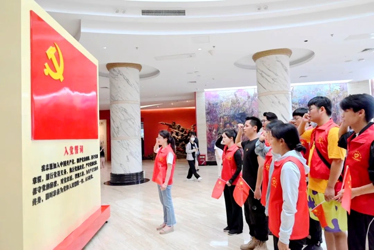 在百色起義紀念館,實踐團全體師生黨員重溫入黨誓詞,整齊統(tǒng)一、鏗鏘有力的宣誓聲鼓舞了大家對黨絕對忠誠、絕對純潔、絕對可靠和為共產(chǎn)主義奮斗終身的堅定信念和決心。