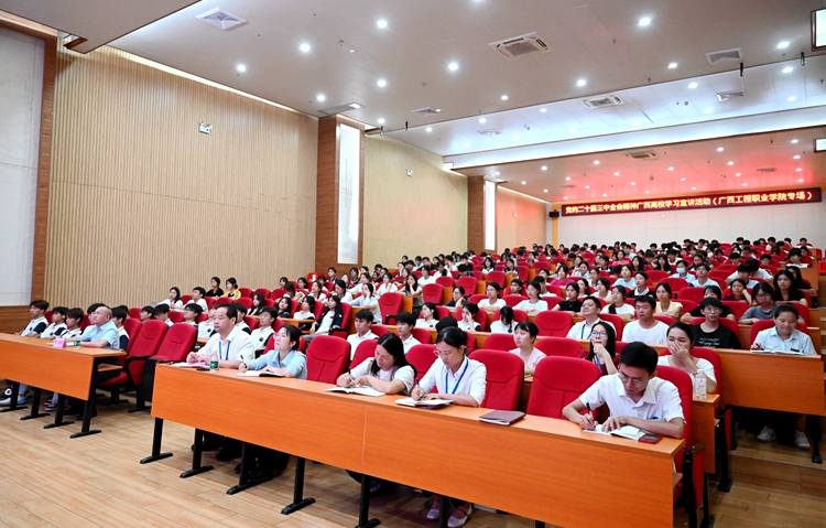 學校將以此次宣講活動為契機,深入學習貫徹黨的二十屆三中全會精神,深刻領(lǐng)會其精神實質(zhì)和豐富內(nèi)涵,把全會精神與學校各項教育教學工作實際相結(jié)合,以更加堅定的信念、更加主動的擔當,為黨育人、為國育才,推動學校事業(yè)高質(zhì)量發(fā)展,為奮力譜寫中國式現(xiàn)代化廣西篇章貢獻廣工程院力量。