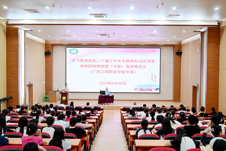 9月30日上午,學習貫徹黨的二十屆三中全會精神自治區(qū)黨委講師團特聘教授(專家)宣講報告會在我校圖文信息大樓一樓學術(shù)報告廳舉行,自治區(qū)黨委講師團特聘教授(專家)、廣西師范大學馬克思主義學院孟憲平教授作宣講報告。