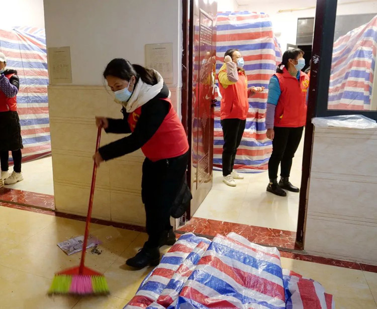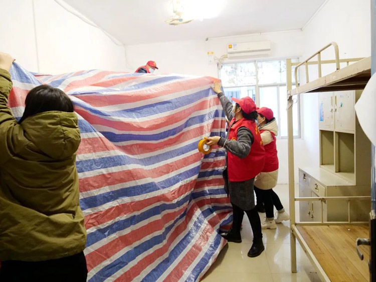 志愿者和老師們有序分工,各負(fù)其責(zé),行動迅速,爭分奪秒,晝夜不休,進(jìn)行衛(wèi)生打掃、物品處置等,有條不紊地把臨時(shí)隔離點(diǎn)建設(shè)工作做實(shí)做細(xì)做好。