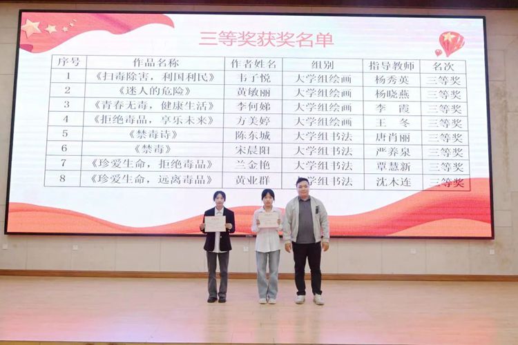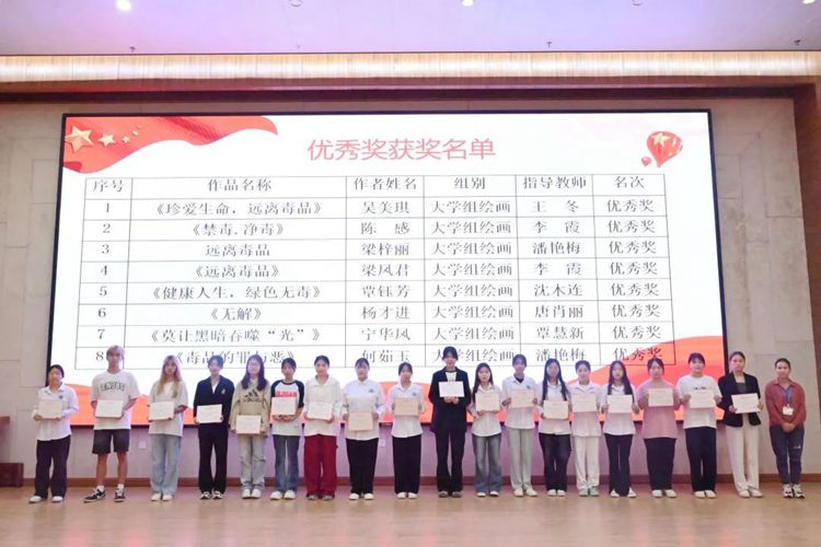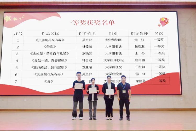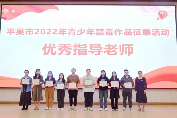 學(xué)校黨委委員、學(xué)生工作處副處長(zhǎng)李麗詩(shī)為獲得平果市2022年青少年禁毒作品