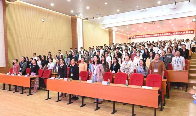 為表彰先進(jìn),樹立榜樣形象,凝聚榜樣力量,發(fā)揮榜樣引領(lǐng)作用,營(yíng)造積極向上的校園氛圍,2023年11月9日晚,學(xué)校在圖文信息大樓一樓學(xué)術(shù)報(bào)告廳舉行了2022-2023學(xué)年先進(jìn)班集體、三好學(xué)生、優(yōu)秀學(xué)生干部、學(xué)生工作積極分子表彰暨頒獎(jiǎng)儀式。學(xué)生工作處全體人員、二級(jí)學(xué)院院長(zhǎng)、黨支部副書記、學(xué)生科長(zhǎng)、全體輔導(dǎo)員及學(xué)生代表參加儀式。儀式由團(tuán)委副書記陳國(guó)昇主持。