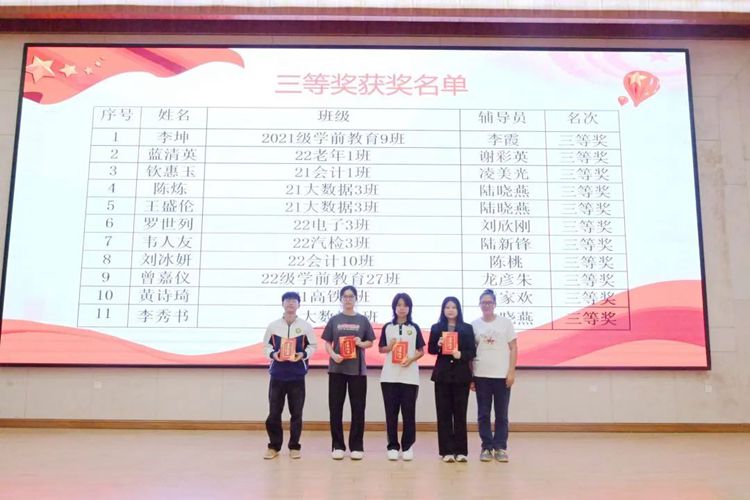 教育學(xué)院分團(tuán)委書記盧燕梅為獲得廣西工程職業(yè)學(xué)院2023年大學(xué)生朋輩心理輔導(dǎo)技能大賽心理知識(shí)競(jìng)賽一等獎(jiǎng)的代表頒獎(jiǎng)