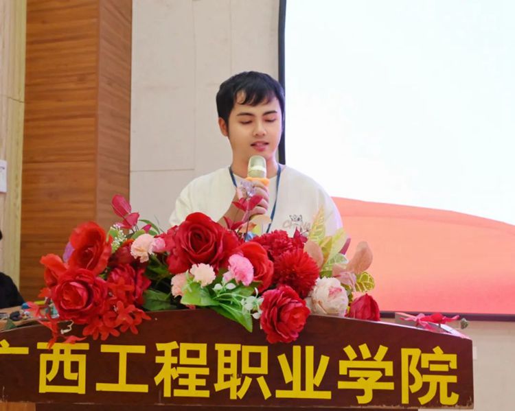 汽車與機(jī)電學(xué)院學(xué)生科科長(zhǎng)楊小櫻為獲得廣西工程職業(yè)學(xué)院2023年大學(xué)生朋輩心理輔導(dǎo)技能大賽心理知識(shí)競(jìng)賽三等獎(jiǎng)的代表頒獎(jiǎng)