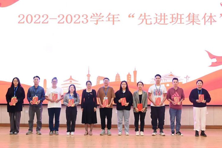 學(xué)校黨委委員、學(xué)生工作處副處長(zhǎng)李麗詩(shī)為所帶班級(jí)被評(píng)為2022-2023學(xué)年先進(jìn)班集體的輔導(dǎo)員頒獎(jiǎng)