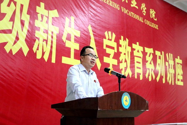 校長助理黃德偉作教學管理專題教育,他為新生介紹學校人才培養(yǎng)的基本情況,以及學校的考試制度、違紀處理、專升本條件等,囑咐新生們要盡早做準備,奮力拼搏,全面發(fā)展,不要荒廢大學。