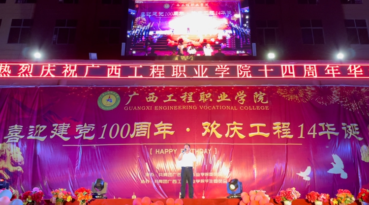 2021年4月20日晚,學(xué)校在魯班廣場舉行“喜迎建黨100周年·歡慶工程14華誕”校慶文藝晚會,共青團平果市委員會書記董亦輝,大學(xué)管委會羅永林主任、農(nóng)浩副主任,學(xué)校黨政領(lǐng)導(dǎo)班子,學(xué)校附屬實驗中學(xué)領(lǐng)導(dǎo)以及社會各界領(lǐng)導(dǎo)、嘉賓出席晚會現(xiàn)場,與全體師生共慶建校十四周建,喜迎建黨100周年。