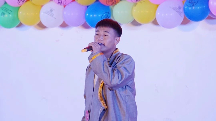 選手索朗倫珠歌唱《再唱山歌給黨聽》