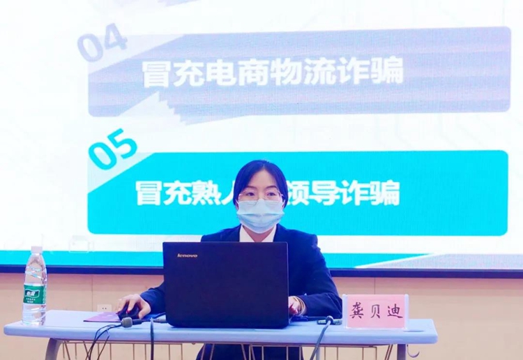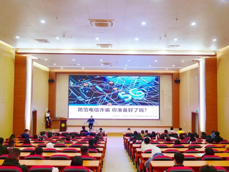 活動(dòng)中,平果市人民法院刑事審判庭龔貝迪同志運(yùn)用豐富、生動(dòng)的案例,直觀簡(jiǎn)明地為師生們講解了幾種常見的詐騙手段,用發(fā)生在身邊的真實(shí)案例告訴同學(xué)們?cè)黾臃丛p騙知識(shí)的重要性,敲響了防詐騙的警鐘,并提醒師生們,預(yù)防詐騙要堅(jiān)持不輕信、不透露、不匯款、不轉(zhuǎn)賬,堅(jiān)決不給不法分子可乘之機(jī)。