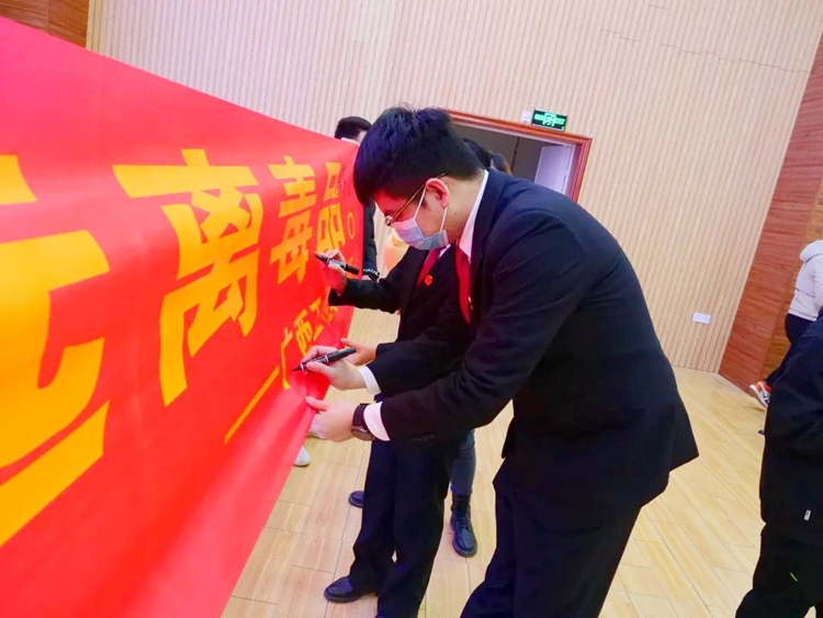 講座上還開展了“珍愛生命、遠(yuǎn)離毒品”和“預(yù)防艾滋病,你我同參與”的簽字活動(dòng)。參加講座的領(lǐng)導(dǎo)、嘉賓和師生紛紛在橫幅上簽字表達(dá)禁毒防艾的決心。