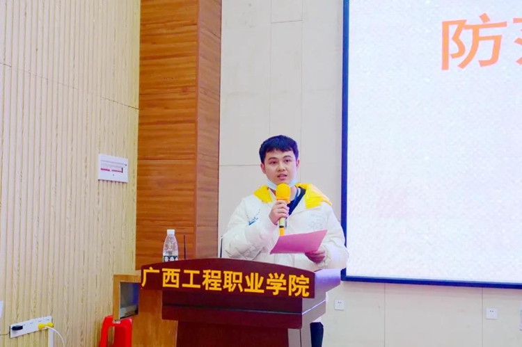 平果市人民法院刑事審判庭龔貝迪在給同學(xué)們講解各類防詐騙知識(shí)