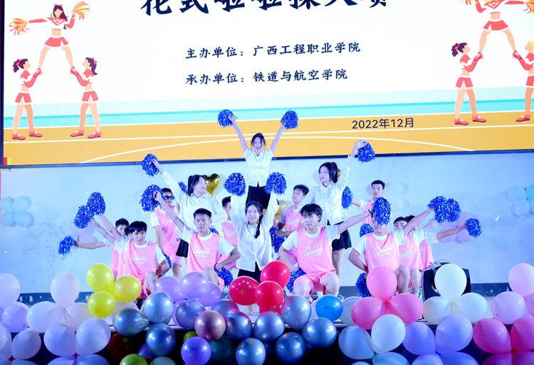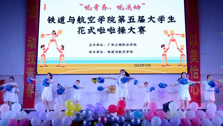 為豐富校園文化生活,進(jìn)一步普及與開展啦啦操運(yùn)動(dòng),促進(jìn)學(xué)生身心健康發(fā)展,培養(yǎng)學(xué)生們的團(tuán)隊(duì)意識(shí),充分展現(xiàn)廣工院學(xué)子朝氣蓬勃、活力四射的良好精神面貌和青春風(fēng)采,12月11日,鐵道與航空學(xué)院舉行第五屆“悅運(yùn)動(dòng),悅青春”大學(xué)生花式啦啦操大賽。