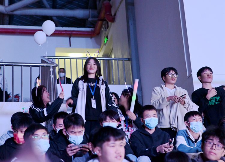 第一支比賽隊(duì)伍22級(jí)城軌1班藍(lán)鯨隊(duì),以甜美的笑容、活潑熱情的舞姿、新穎獨(dú)特的編排、繽紛多彩的造型以及整齊劃一和富有激情的表演迅速將觀眾帶入比賽中。