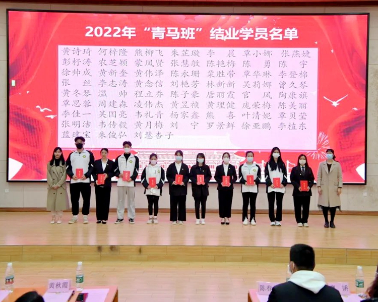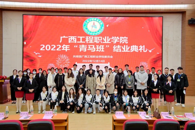2022年12月14日晚,廣西工程職業(yè)學(xué)院在圖文信息大樓一樓學(xué)術(shù)報(bào)告廳舉行2022年“青馬班”的結(jié)業(yè)典禮。“青馬班”學(xué)員們將始終牢記習(xí)近平總書(shū)記對(duì)青年的殷殷囑托,持續(xù)加強(qiáng)習(xí)近平新時(shí)代中國(guó)特色社會(huì)主義思想和黨的二十大精神學(xué)習(xí),堅(jiān)定不移聽(tīng)黨話、跟黨走,做“有理想、敢擔(dān)當(dāng)、能吃苦、肯奮斗”新時(shí)代好青年,奮進(jìn)新征程,詮釋新使命,創(chuàng)造新業(yè)績(jī)。