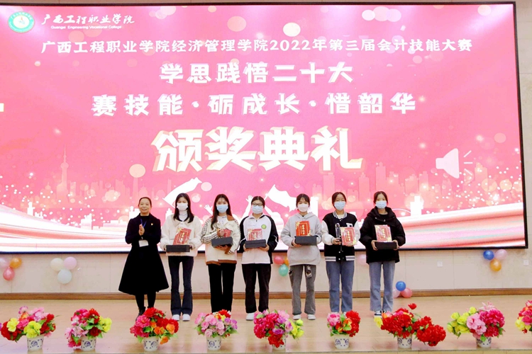 各項(xiàng)技能比賽結(jié)束后,經(jīng)濟(jì)管理學(xué)院石娜老師宣布獲獎(jiǎng)名單,出席比賽現(xiàn)場(chǎng)的領(lǐng)導(dǎo)和老師分別為獲獎(jiǎng)選手頒發(fā)榮譽(yù)證書(shū)。
