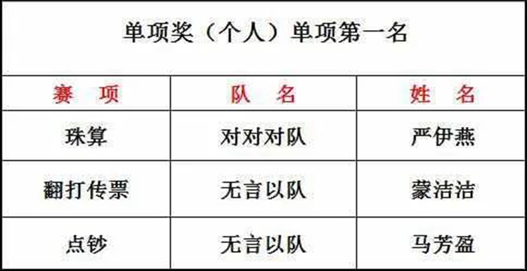 單項(xiàng)獎(jiǎng)第一名