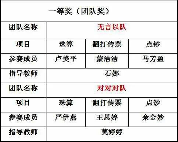 團(tuán)隊(duì)獎(jiǎng)第一名