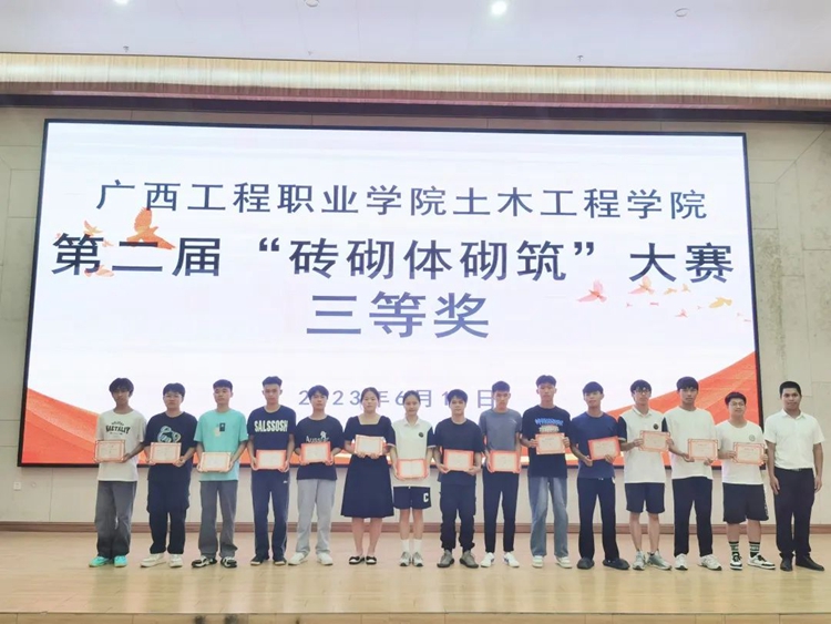 為弘揚(yáng)工匠精神,促進(jìn)我校學(xué)生專(zhuān)業(yè)技能水平提高,加強(qiáng)高素質(zhì)技術(shù)技能型人才培養(yǎng),檢驗(yàn)教育教學(xué)改革成果,提高學(xué)生的實(shí)踐動(dòng)手能力和團(tuán)隊(duì)合作精神,鍛煉學(xué)生應(yīng)用專(zhuān)業(yè)知識(shí)解決實(shí)際問(wèn)題的能力,廣西工程職業(yè)學(xué)院土木工程學(xué)院于2023年6月3日—6月4日舉行第二屆磚砌體砌筑技能大賽和第四屆工程測(cè)量技能大賽。
