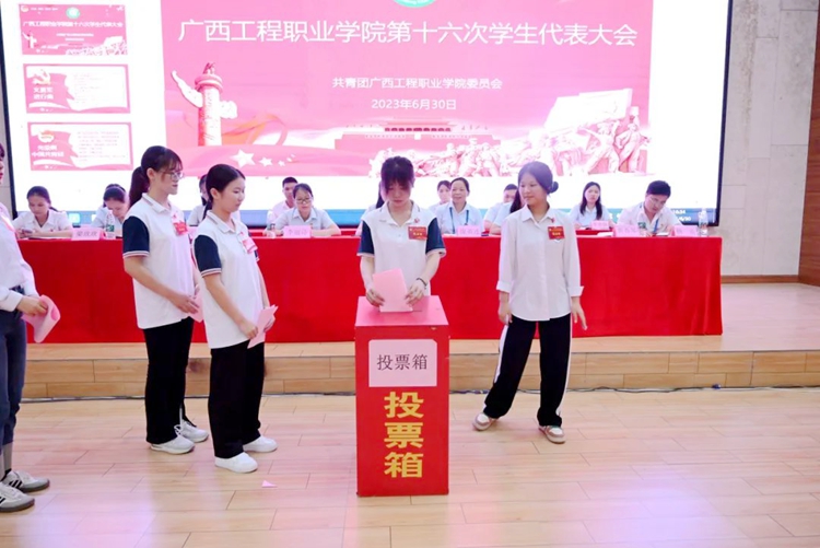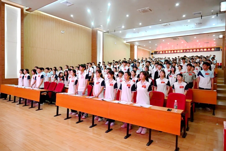 在慷慨激昂的國歌聲中,廣西工程職業(yè)學院第十六次學生代表大會第一次正式會議拉開了帷幕。
