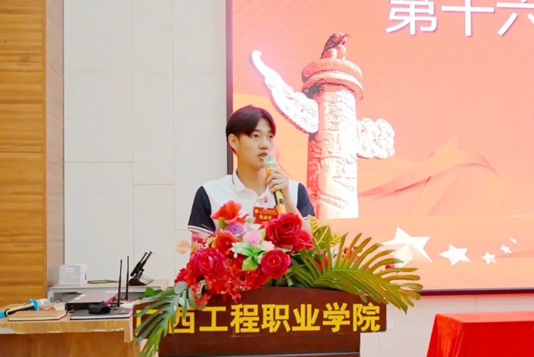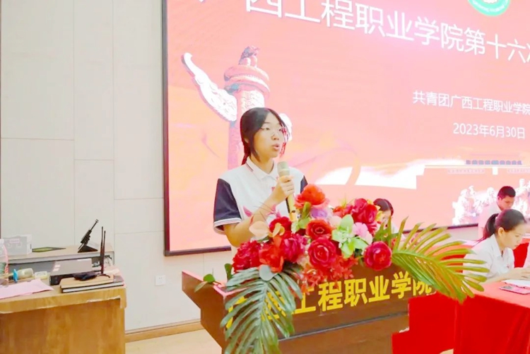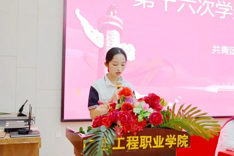 大會主席團執(zhí)行主席黃詩琦作廣西工程職業(yè)學院第十五屆學生會工作報告