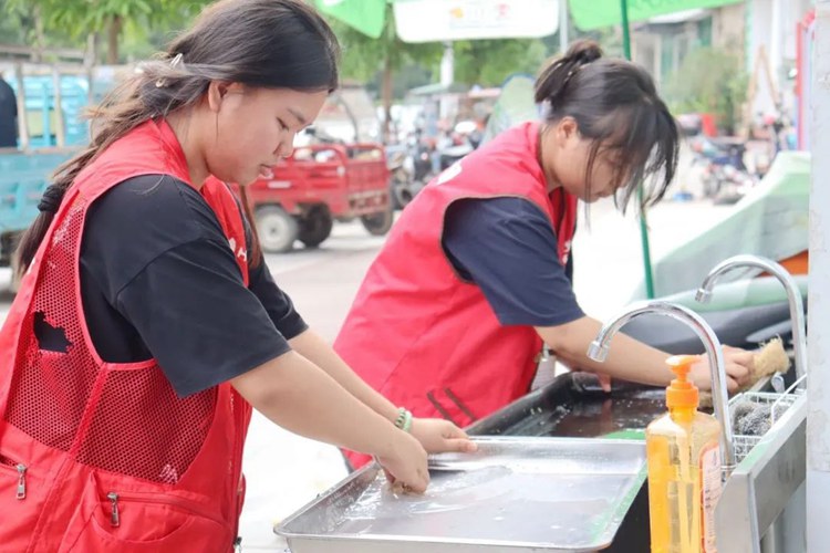 志愿者們參與餐前準備、餐飲食物分發(fā)等工作,確保老人們能夠準時就餐。