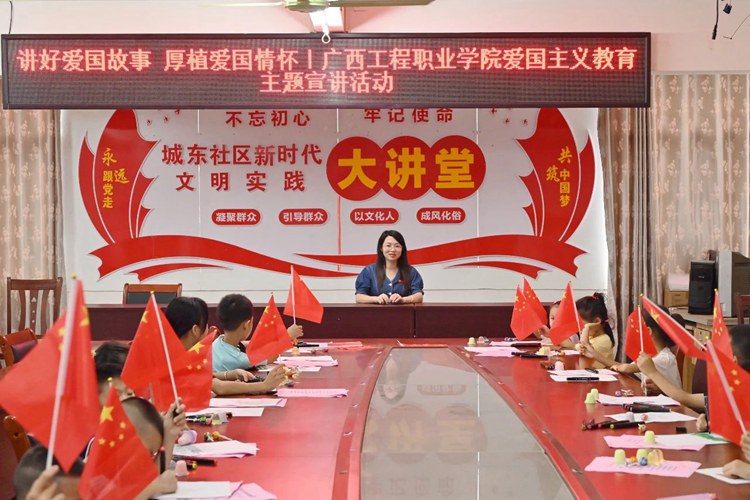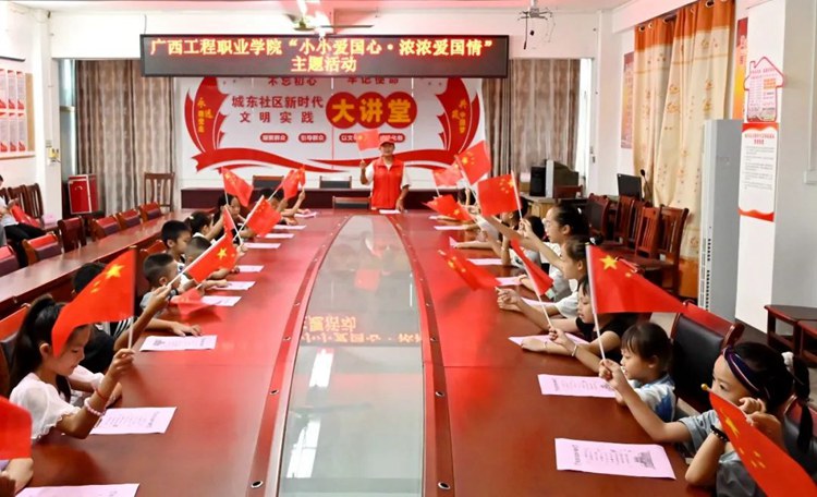今年是新中國(guó)成立75周年,為了進(jìn)一步弘揚(yáng)愛國(guó)主義精神,踐行社會(huì)主義核心價(jià)值觀,2024年7月19日,廣西工程職業(yè)學(xué)院“青年先鋒隊(duì),基層實(shí)踐行”服務(wù)團(tuán)、“傳承紅色基因,勇?lián)鷷r(shí)代使命”實(shí)踐團(tuán)到平果市馬頭鎮(zhèn)城東社區(qū)開展“小小愛國(guó)心 濃濃愛國(guó)情”“巧手繪初心 彩畫頌黨恩”“中華民族一家親 同心共筑中國(guó)夢(mèng)”等特色實(shí)踐服務(wù)活動(dòng)。