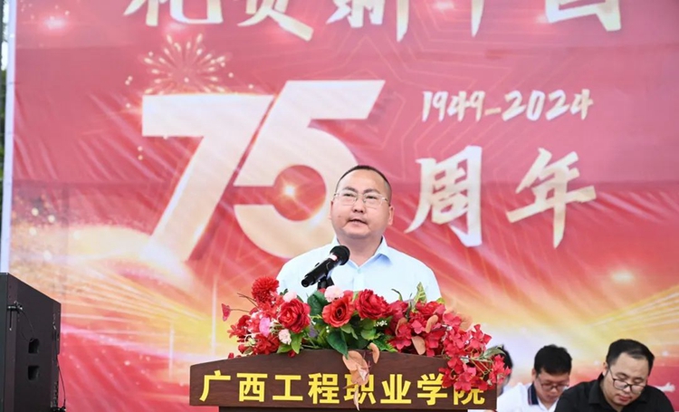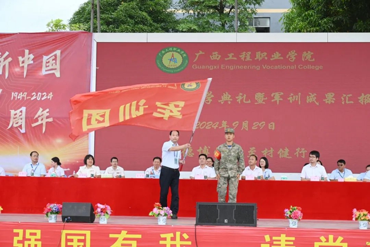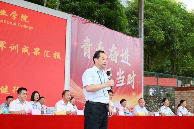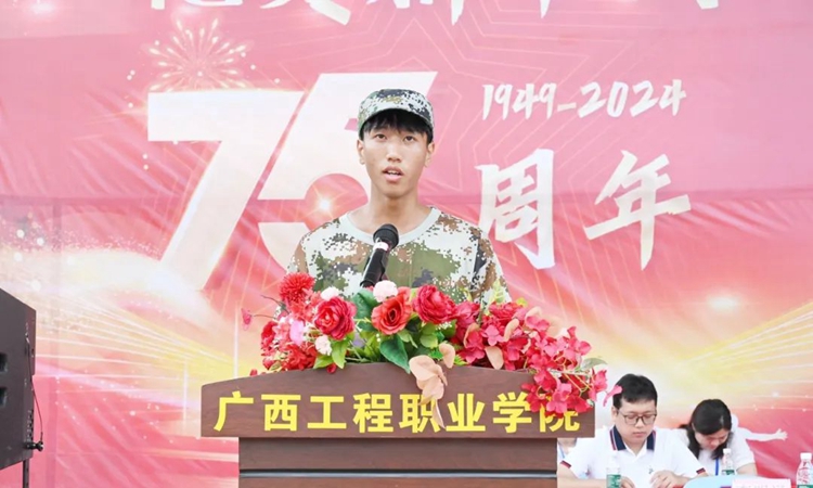 平果市人民政府副市長盧登講話,他肯定了學(xué)校的辦學(xué)成就和為地方經(jīng)濟(jì)社會(huì)發(fā)展做出的突出貢獻(xiàn),希望2024級(jí)新生要把軍訓(xùn)中養(yǎng)成的良好的行為習(xí)慣和精氣神延續(xù)到即將開啟的大學(xué)生活中去,珍惜大學(xué)時(shí)光,堅(jiān)定理想信念,立大志、明大德、學(xué)本領(lǐng)、強(qiáng)體魄,與新時(shí)代同向同行,敢為天下先、勇?lián)煜氯?,努力做走在時(shí)代前列的奮進(jìn)者、開拓者、奉獻(xiàn)者,努力成長為德智體美勞全面發(fā)展的社會(huì)主義建設(shè)者和接班人,為實(shí)現(xiàn)中華民族偉大復(fù)興的中國夢貢獻(xiàn)青春力量和智慧。