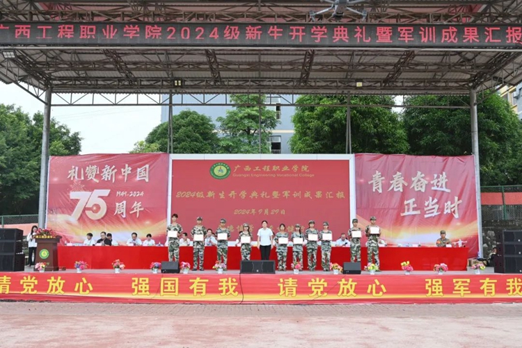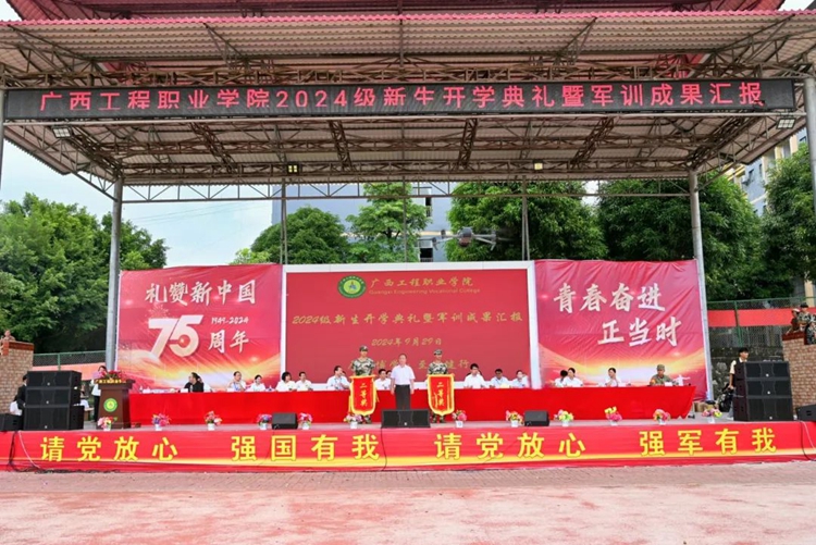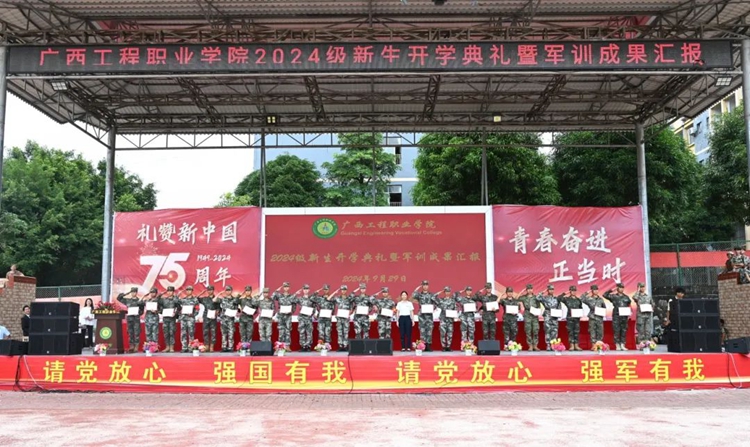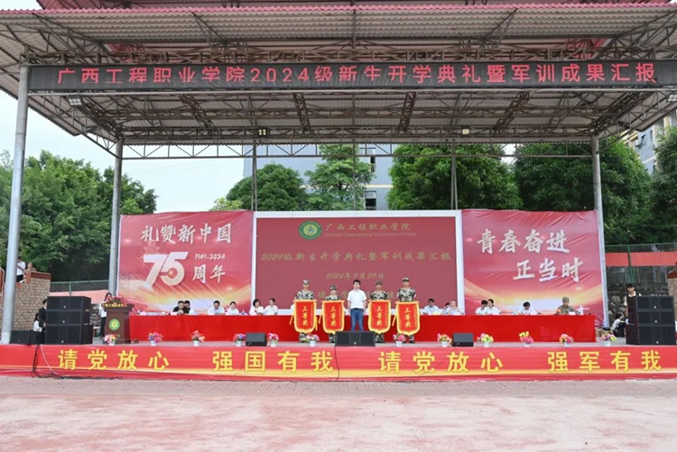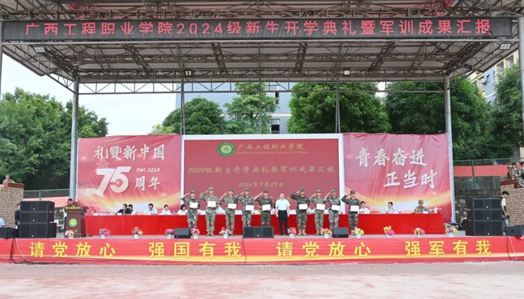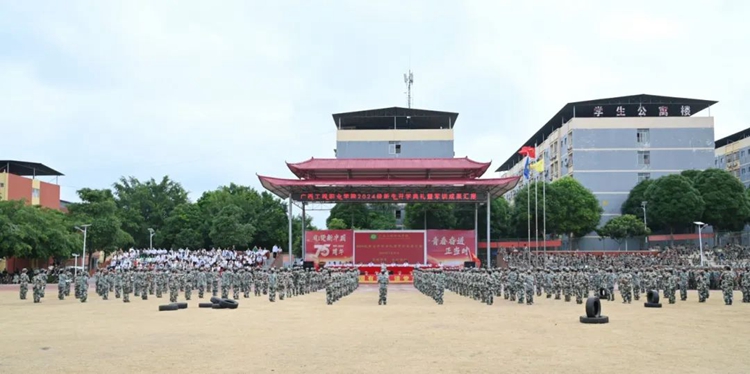 我校舉行2024級(jí)新生開學(xué)典禮暨軍訓(xùn)成果匯報(bào)在中華人民共和國迎來75華誕之際,9月29日上午,學(xué)校舉行2024級(jí)新生開學(xué)典禮暨軍訓(xùn)成果匯報(bào),新生們整裝集結(jié)在田徑場,用嘹亮的口號(hào)致敬青春,用精彩的匯演獻(xiàn)禮祖國。