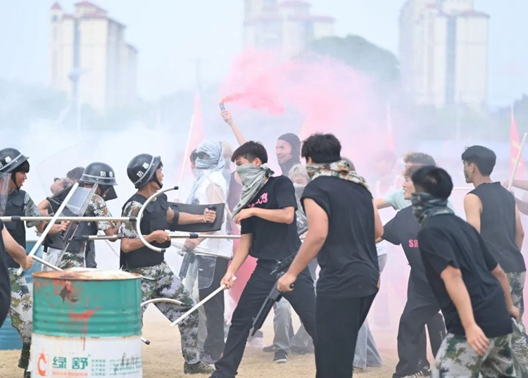 戰(zhàn)士們頭戴防毒面具、手握仿真槍,在“硝煙”中隱蔽偵查,沖鋒突擊、格擋、抱摔,深入“敵區(qū)”成功解救“人質(zhì)”,緊密的戰(zhàn)術(shù)動(dòng)作,精準(zhǔn)的指揮巧妙地躲避著“敵人”的攻擊。