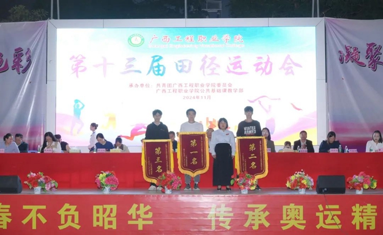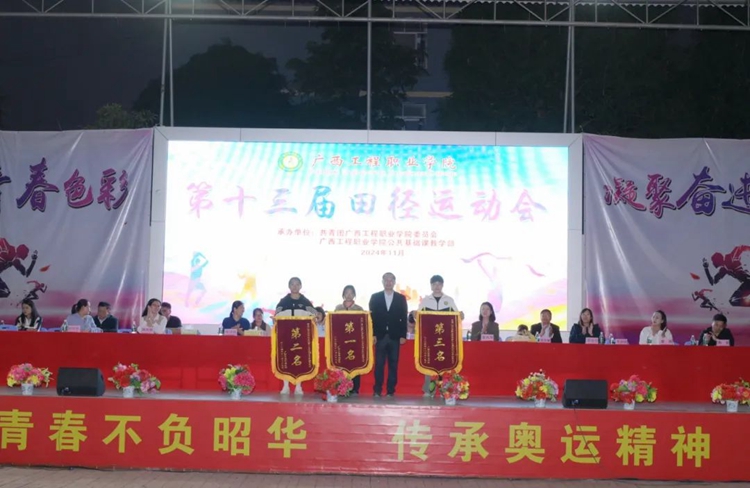 逐夢賽場,斗志昂揚。2024年11月23日下午,廣西工程職業(yè)學院在田徑場舉行第十三屆田徑運動會閉幕式。學校黨委副書記、校長羅艷妮,副校長黃德偉、副校長蔣茂麗及校長助理梁善雅出席閉幕式,各二級學院負責人及中層干部參加閉幕式。閉幕式由校長助理梁善雅主持。