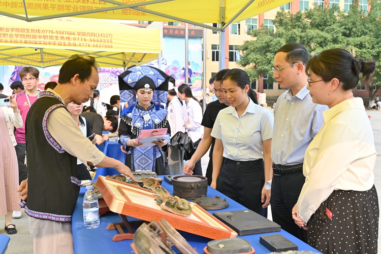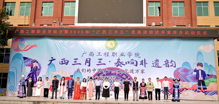 2025年3月25日,廣西工程職業(yè)學(xué)院2025年“廣西三月三”非遺文化進(jìn)校園暨“廣西三月三”民族團(tuán)結(jié)進(jìn)步宣傳月啟動(dòng)儀式在魯班廣場(chǎng)舉行,平果市文學(xué)藝術(shù)界聯(lián)合會(huì)副主席農(nóng)春艷,黨委委員、組織部部長(zhǎng)、副校長(zhǎng)蔣茂麗,副校長(zhǎng)黃德偉,校長(zhǎng)助理梁善雅及黨委辦公室、黨委宣傳部、統(tǒng)戰(zhàn)部、教師工作部、學(xué)生工作處、校團(tuán)委等相關(guān)部門負(fù)責(zé)人出席啟動(dòng)儀式。各二級(jí)學(xué)院師生代表參加儀式。