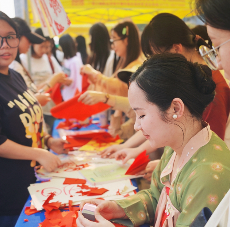 啟動(dòng)儀式現(xiàn)場(chǎng),非遺文化進(jìn)校園、非遺傳承人現(xiàn)場(chǎng)授藝、民族體育競(jìng)技、民族特色美食體驗(yàn)等二十多個(gè)民族特色文化體驗(yàn)打卡活動(dòng),讓我校師生在沉浸式體驗(yàn)中進(jìn)一步感受民族文化、體驗(yàn)非遺之美,堅(jiān)定文化自信,弘揚(yáng)中華民族優(yōu)秀傳統(tǒng)文化,鑄牢中華民族共同體意識(shí)。