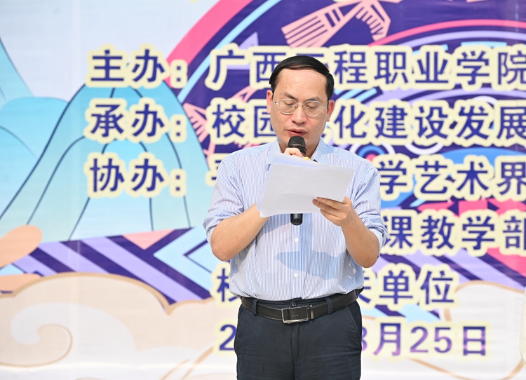 黨委委員、組織部部長(zhǎng)、副校長(zhǎng)蔣茂麗宣布廣西工程職業(yè)學(xué)院2025年“廣西三月三·奏響非遺韻”非遺文化進(jìn)校園暨“廣西三月三”民族團(tuán)結(jié)進(jìn)步宣傳月活動(dòng)正式開始