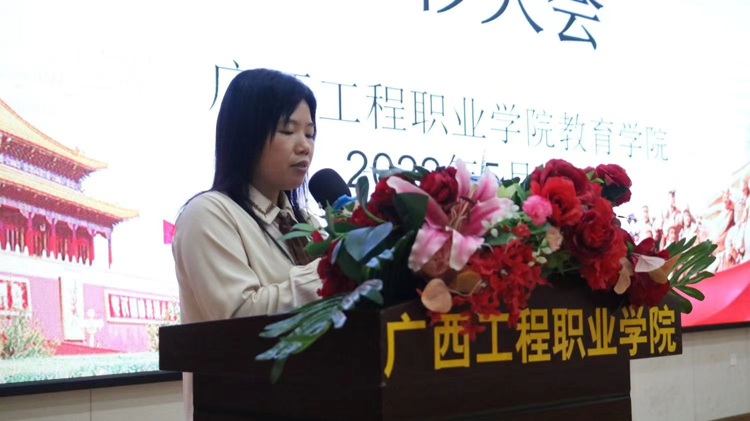 本次到場的嘉賓有學(xué)校副校長林萌、教育學(xué)院副院長梁善雅、教育學(xué)院辦公室主任吳棉、教育學(xué)院學(xué)生科長、分團委書記盧燕梅以及教育學(xué)院全體老師。